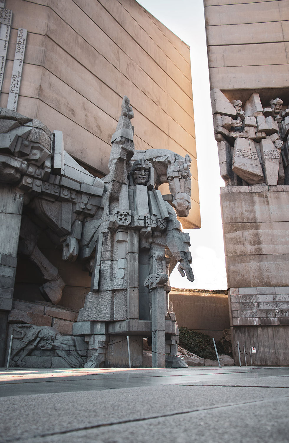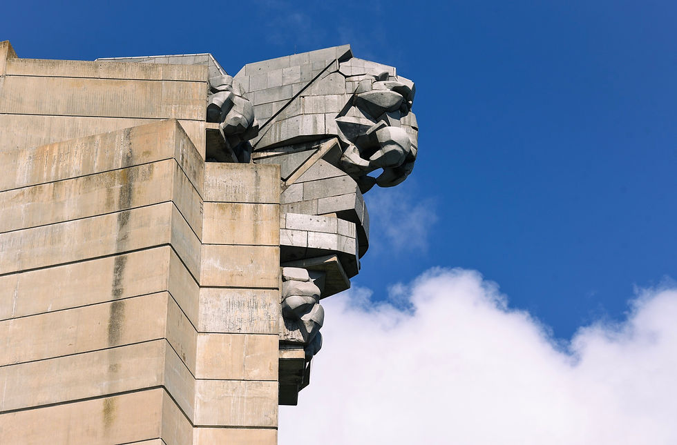 На самия връх на паметника, извисяващ се на 50 метра височина е разположен лъвът – символ на България. Бетонната скулптора е пълна с 2 000 елемента гранит и е с тежест от 1 000 тона. Точно зад опашката на лъва е изобразена пеперуда – символ на дълголетие. Българската държава през годините преминава през няколко метаморфози – възходи и падения, които я изграждат и превръщат в това, което е днес. Досущ като пеперуда.